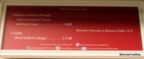 The Poland pierogies and sausage dish has been a favorite at the Food and Wine Festival for years, and, luckily, it’s back this year! I’m excited to pair it with the Chopin Strawberry Balsamic Chiller — I wonder what that will be like!