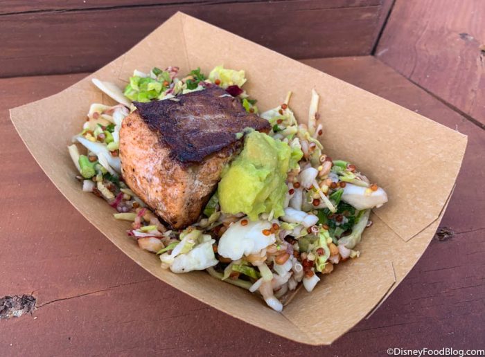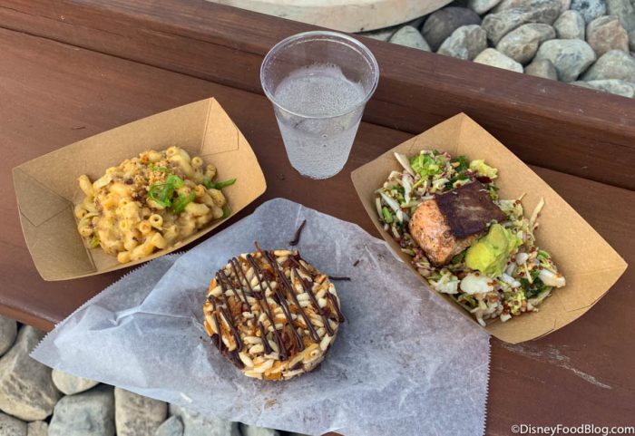 Active Eats was a new booth celebrating the 35th anniversary of Epcot in 2017. The booth brought back a few favorites from previous Epcot Food and Wine Festivals — Loaded Mac and Cheese with bacon (!!) and green onions, and Roasted Verlasso Salmon!