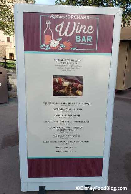2019 Epcot Food and Wine Festival Appleseed Orchard Wine Bar Booth Menus