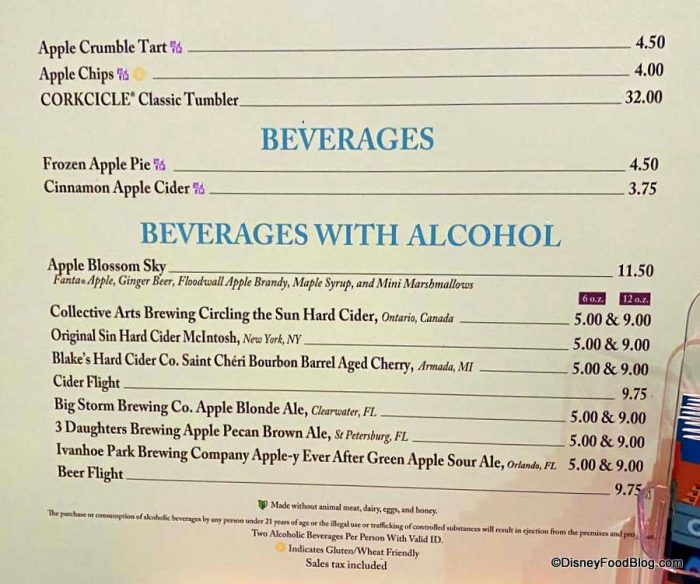 2021 EPCOT Food and Wine Festival Appleseed Orchard Booth Menu