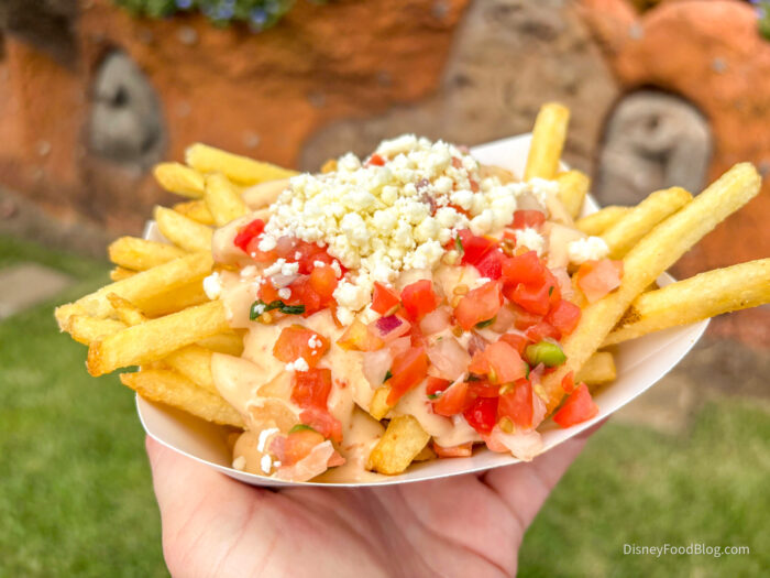 Now, Frontierland’s Pecos Bill Tall Tale Inn and Cafe is often overlooked as a snack spot. It’s a stop many make to have rice bowls, burgers, or pulled pork sandwiches for lunch or dinner. But we think this is a great stop for a snack! It’s indoors (air conditioning!) with a variety of sides on the menu, and we need to tell you about our favorite one!