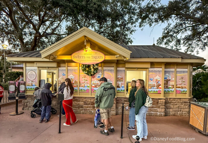 Yep, Holiday Sweets and Treats sure did! Holiday Sweets and Treats is one of the Holiday Kitchens (also known as Festival Food Booths) at the 2025 EPCOT Festival of the Holidays, and along with peppermint sundaes and shakes, they’ve decided to switch things up this year with a new Festive Flight made of Hot Cocoas! We hope you’ll join us at Holiday Sweets and Treats as we bring your our FULL review!
