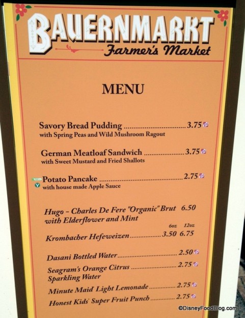Adjacent to Epcot’s Germany pavilion, the Farmer’s Market (Bauernmarkt) offers a Beer Flight — great for washing down any (or all) of these delicious eats!