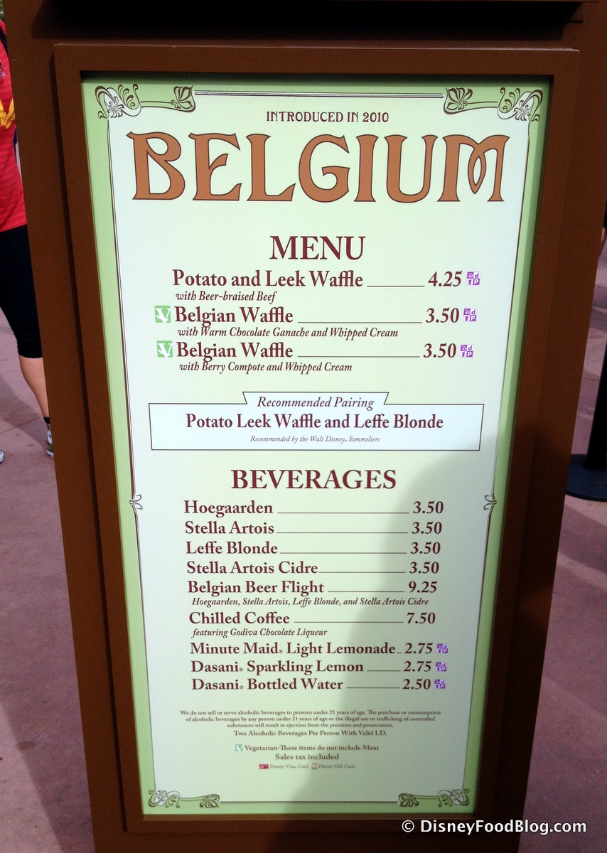 Belgium debuted at the Epcot Food and Wine Festival in 2010. A Beer Flight will help wash down whatever you choose to nosh on!