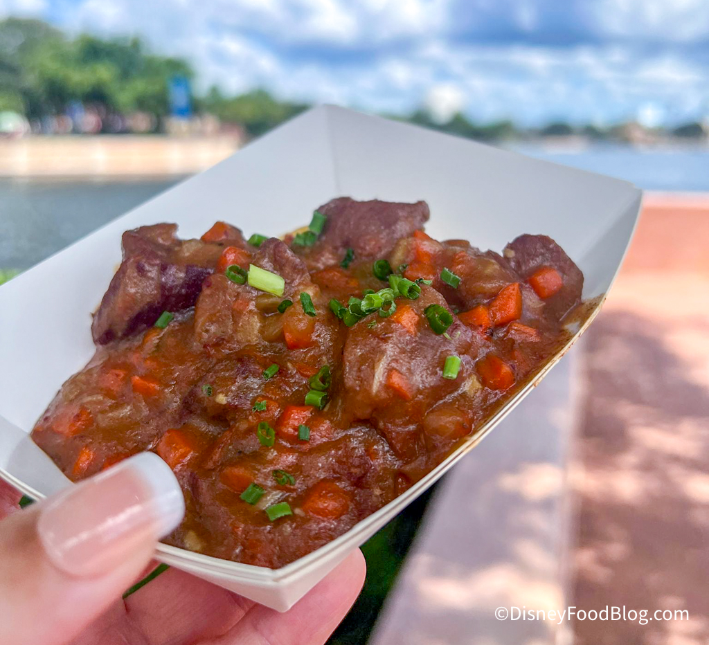 - Beer-braised Beef served with smoked gouda mashed potatoes — $6.25, Disney Dining Plan snack credit eligible