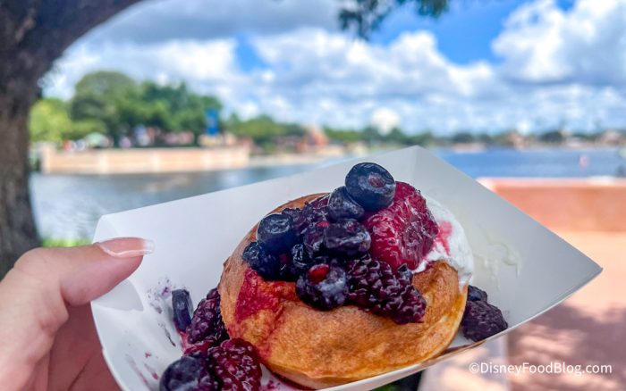 - Belgian Waffle with berry compote and whipped cream — $5.50, Disney Dining Plan snack credit eligible