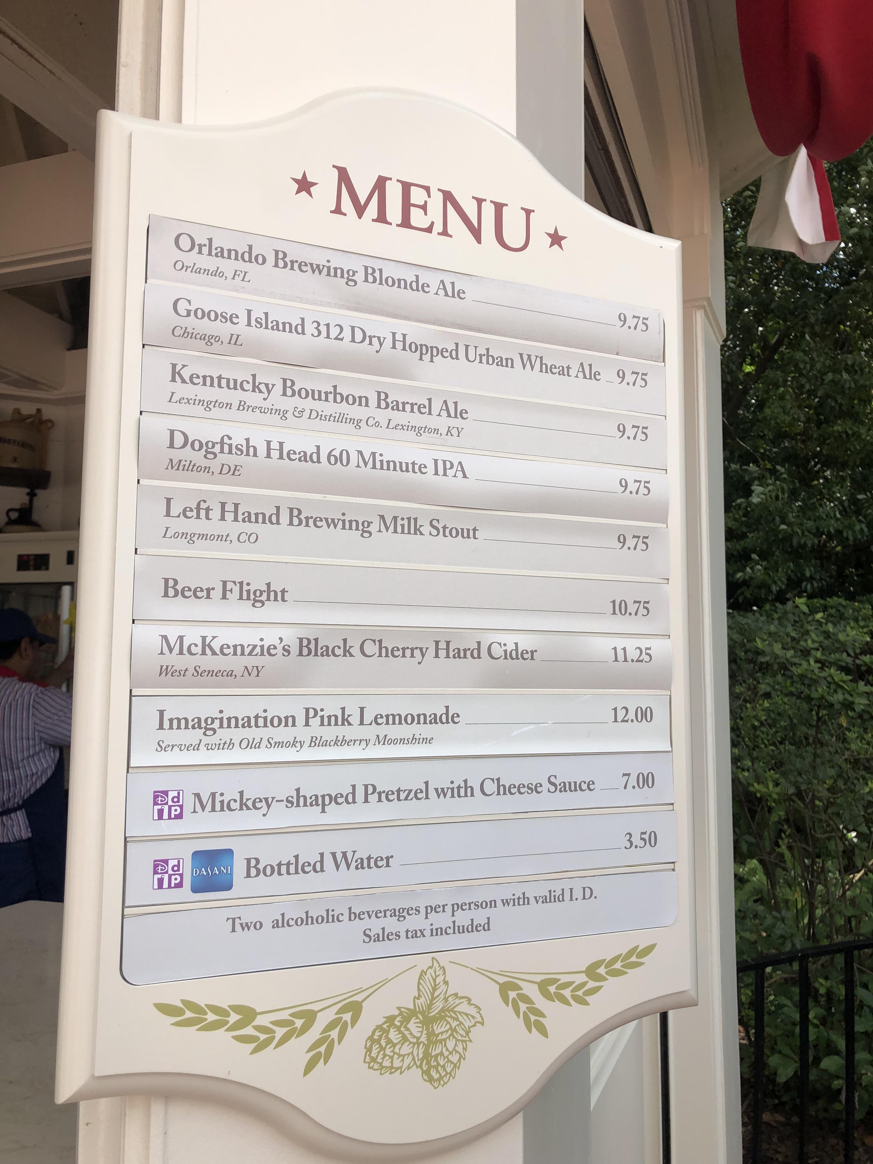 2019 Epcot Food and Wine Festival Block and Hans Booth Menu