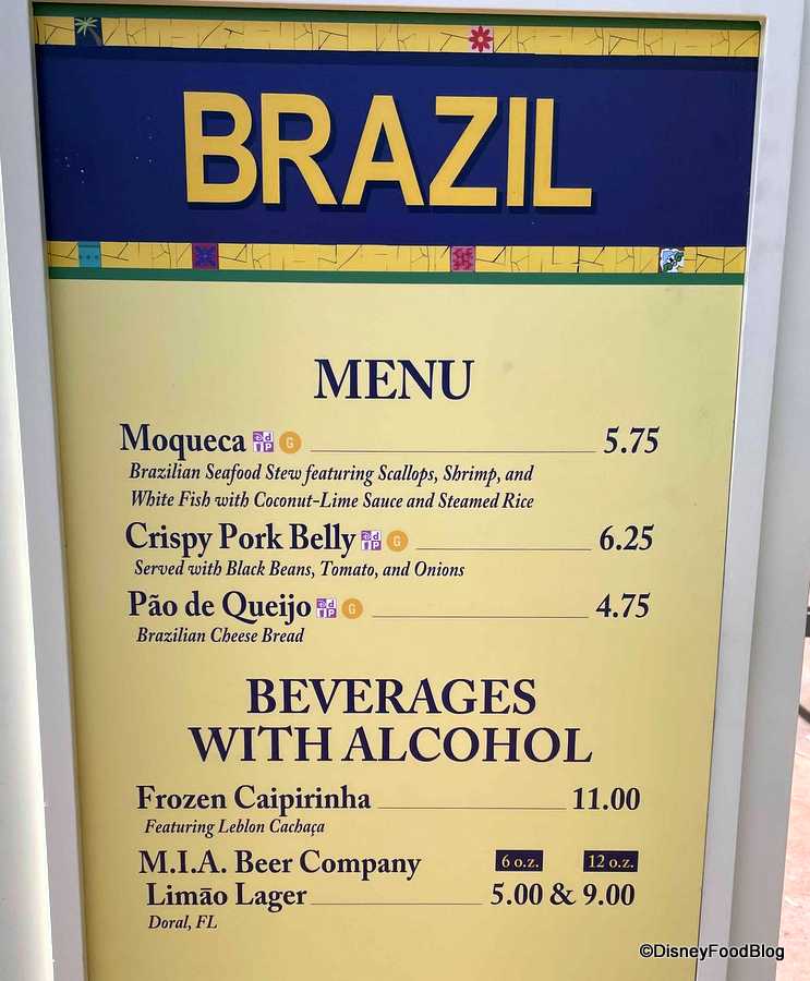 2021 EPCOT Food and Wine Festival Brazil Booth Menu