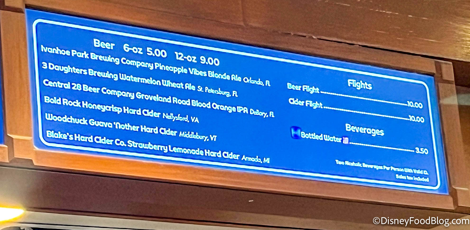 2022 EPCOT Food and Wine Festival Brew Wing Booth Menu