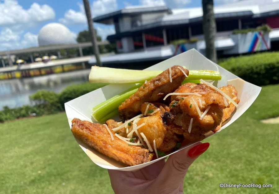 NEW to the 2021 EPCOT Food and Wine Festival is Brew-Wing at the EPCOT Experience! Enjoy a huge variety of chicken wings served up along with beers and ciders, and more!