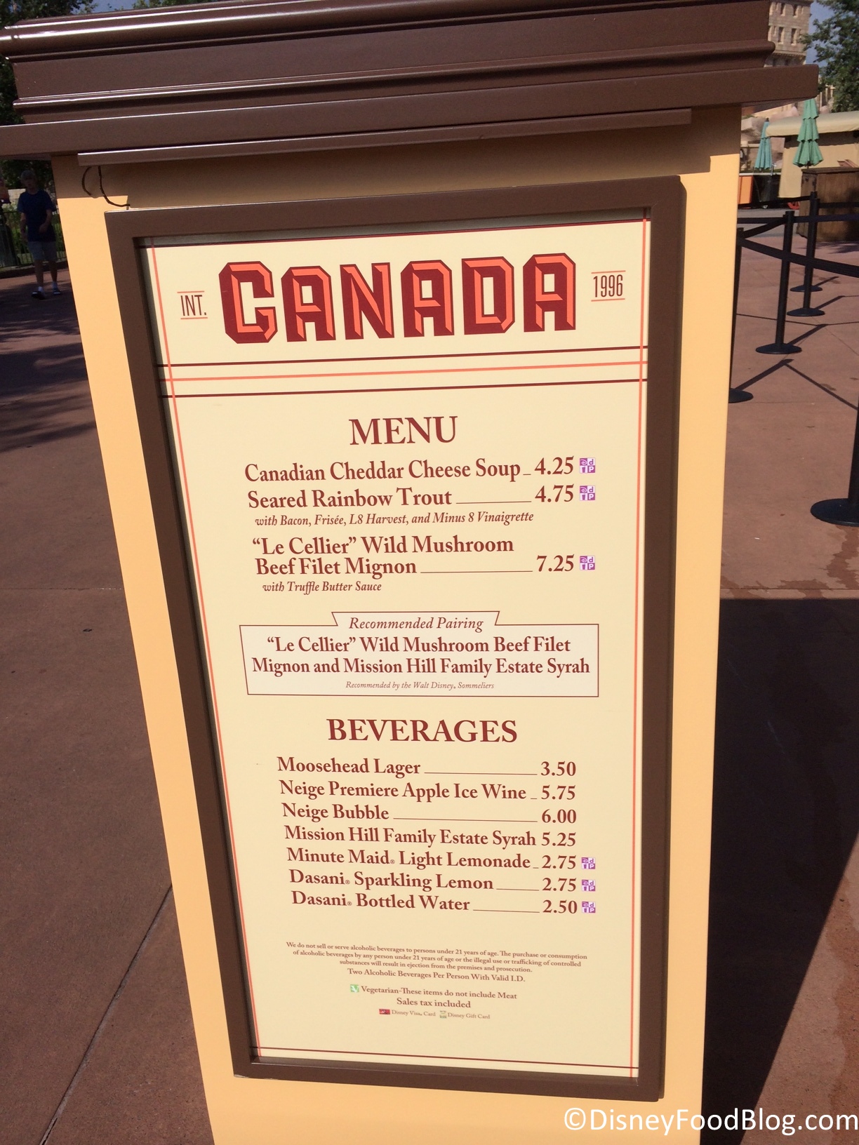 Canada is one of my favorite pavilions – known for its famed cheddar cheese soup and the “Le Cellier” Wild Mushroom Beef Filet Mignon with Truffle Butter Sauce!! We also enjoy the SWEET apple ice wine. Read more details in our 2012 Epcot Food and Wine Festival’s Canada review!