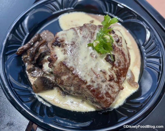 - Le Cellier Wild Mushroom Beef Filet Mignon with Truffle-Butter Sauce (GF) — $8.25, DDP Snack Eligible