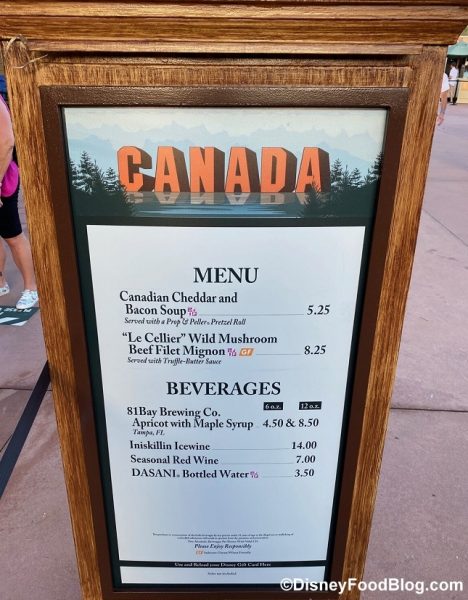Canada is one of my favorite pavilions – known for its famed Cheddar Cheese Soup and the “Le Cellier” Wild Mushroom Beef Filet Mignon with Truffle Butter Sauce!! FYI — lines are SUPER long here.