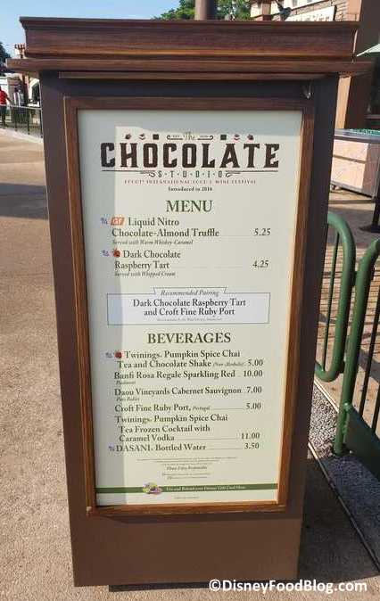 2019 Epcot Food and Wine Festival Chocolate Studio Booth Menu