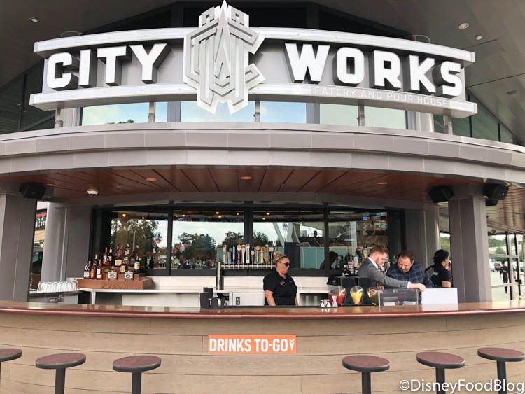 - Like the other City Works Eatery & Pour House locations in the country, the Disney Springs location serves 80 beers on tap from local breweries as well as from around the world.