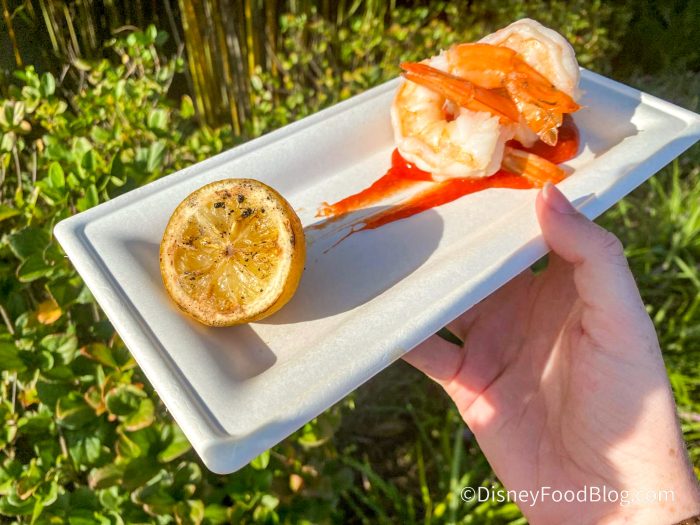 - Jumbo Shrimp Cocktail with cocktail sauce (Gluten/Wheat Friendly) – $13.00, Disney Dining Plan Snack Eligible