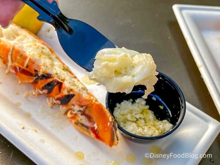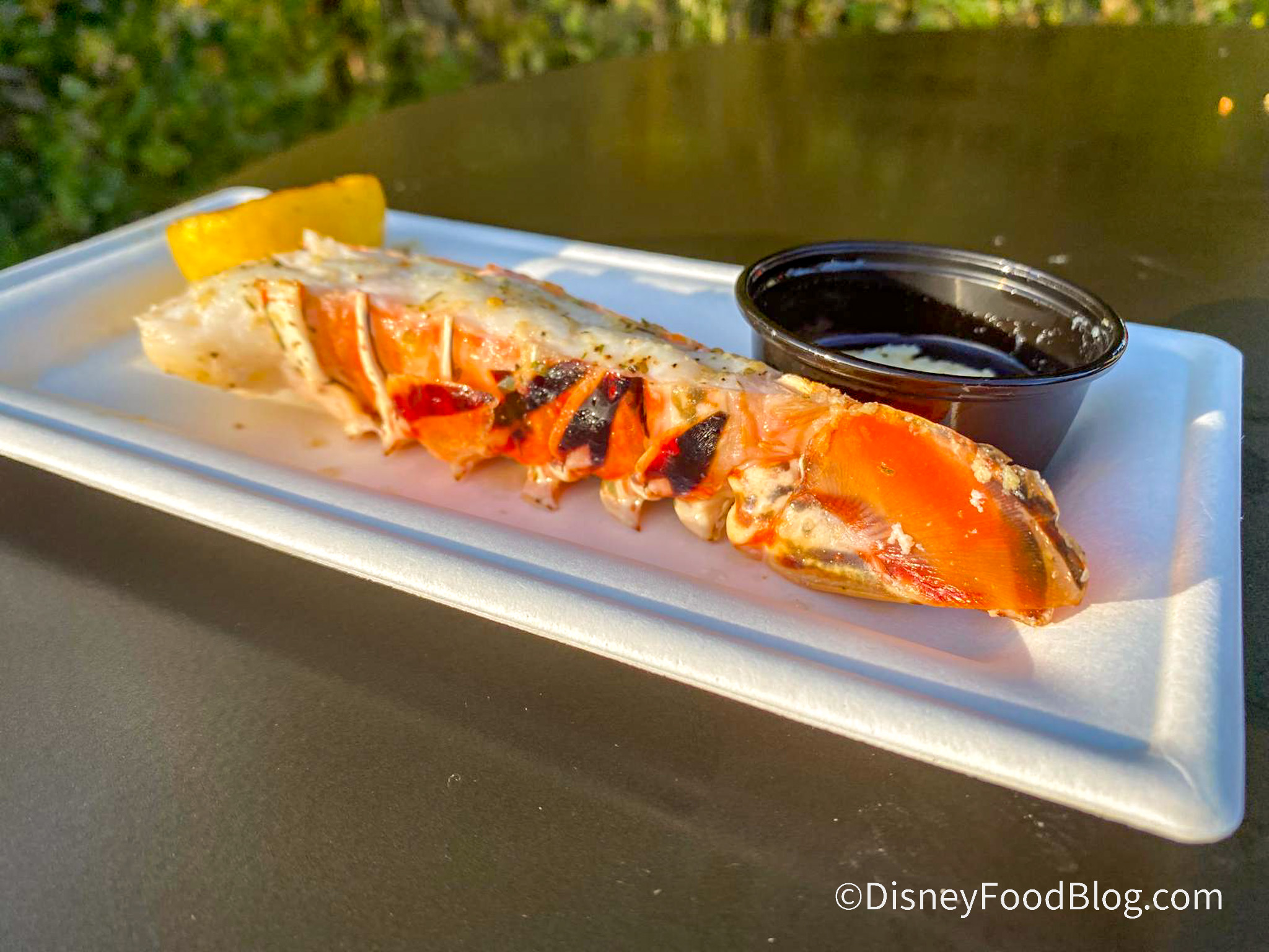 - Roasted Warm Water Lobster Tail with garlic butter – $13.00, Disney Dining Plan Snack Eligible