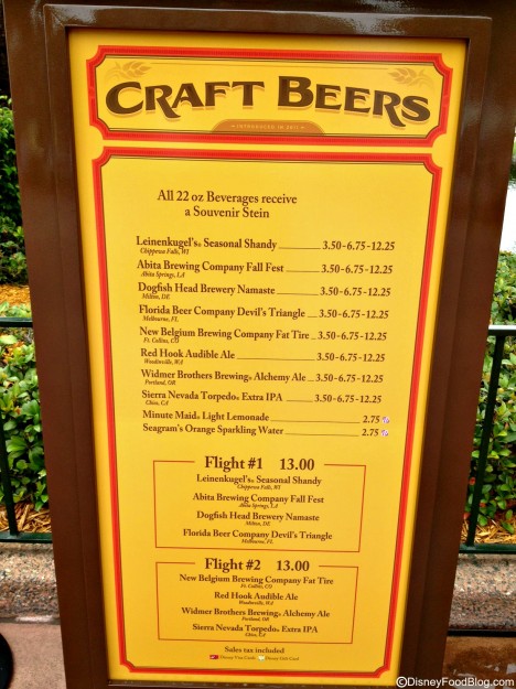 In its third year, the popular craft beer booth returns to the 2013 Epcot Food and Wine Festival! It first appeared in 2010 as the “15 Beers for 15 Years” Booth. Cheers!
