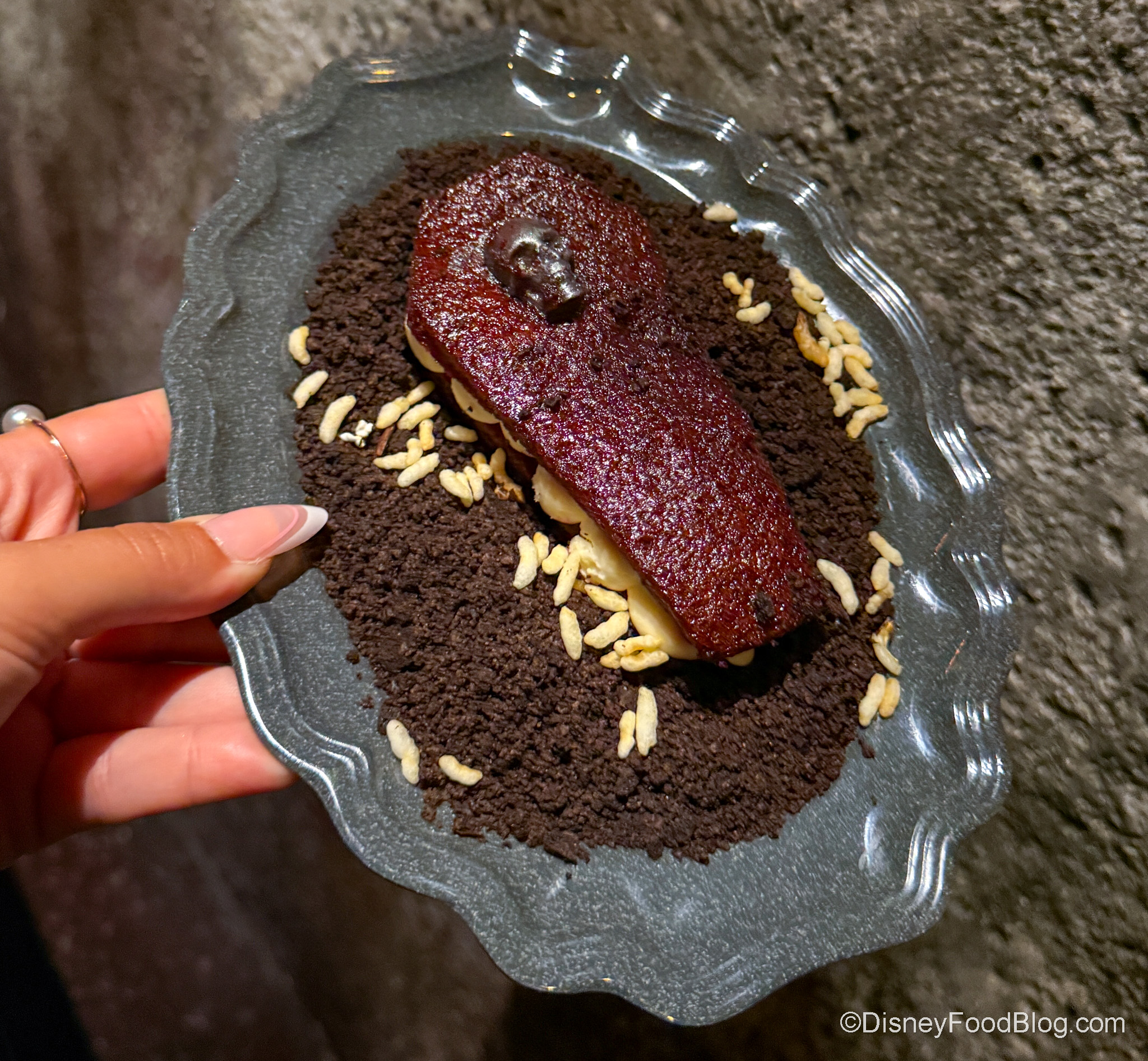 - Red Velvet Death — red velvet heart “beet” coffin cake with chocolate crumbs and puffed rice maggots