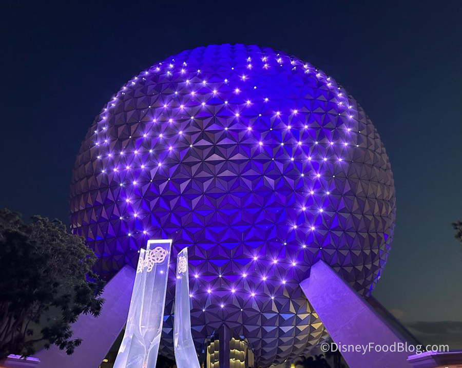 And finally, Spaceship Earth “lights up each night with special colors and lights accompanied by the Disney100 anthem, a unique rendition of ‘When You Wish Upon a Star.’”