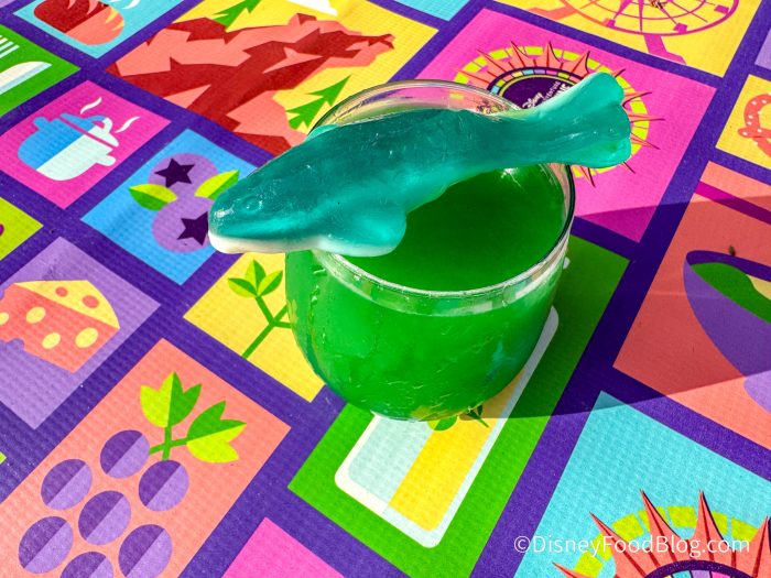- Green Apple Slush Cocktail: Green Apple BeatBox, blue curaçao syrup, melon liqueur, kiwi purée, and lime juice garnished with a shark gummy (New) — $18.50