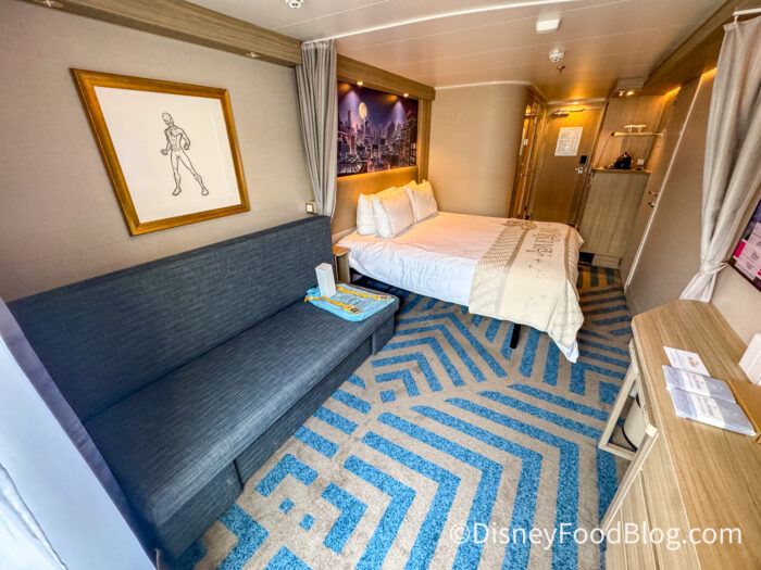Stateroom categories include Inside, Oceanview, Verandah, and Concierge, and all present custom artwork inspired by Disney, Pixar or Marvel stories.