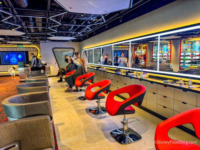 Disney mentioned Iron Man, Spider-Man, Captain America, Captain Marvel, Thor, and Black Panther specifically. Not only does the studio give character-style makeovers featuring characters like Iron Man, Spider-Man, Captain America, Captain Marvel, Thor, and Black Panther, but Disney also shares that “the sleek space will transform into an adults-only lounge offering bookable beverage tastings.”