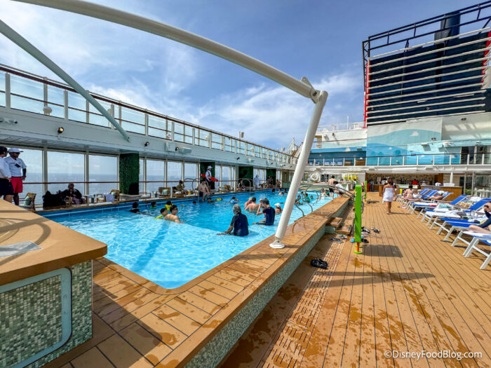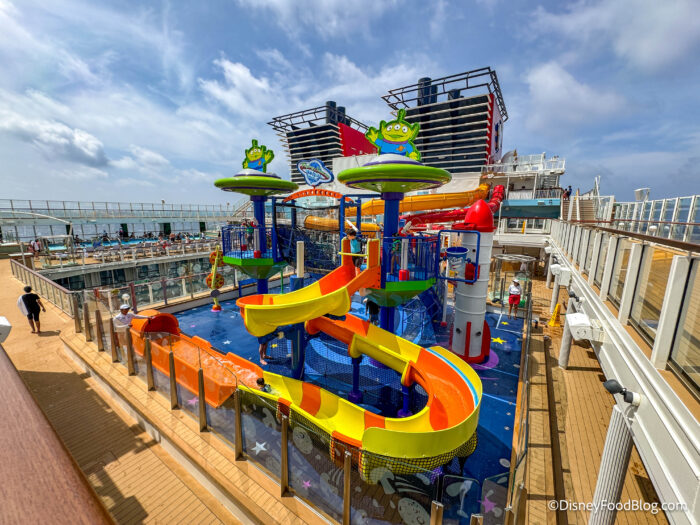 Toy Story Place is on the upper decks of the ship and features a Toy Story-inspired area with a family pool, whirlpools, slides, splash pads, dining options, outdoor movies, trivia, and more!
