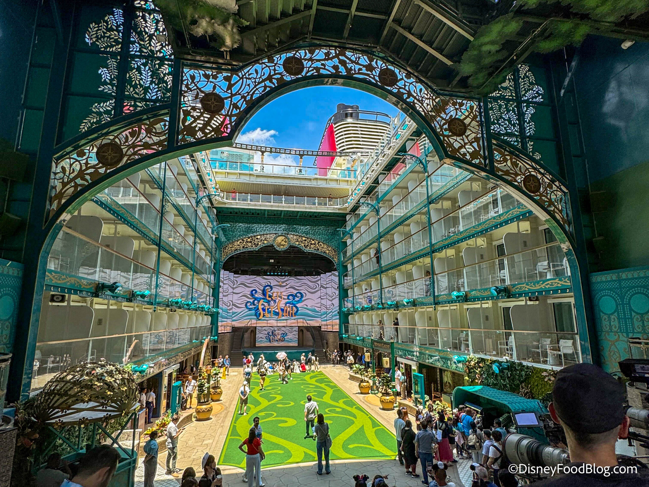 Town Square is a “fantastical forest” where passengers can find shops, lounges, cafes, restaurants and entertainment venues. It’s like stepping into a fairytale! Here you’ll find theming elements inspired by Cinderella, Tiana, Anna, Elsa, Rapunzel, and all your favorite Disney princesses.