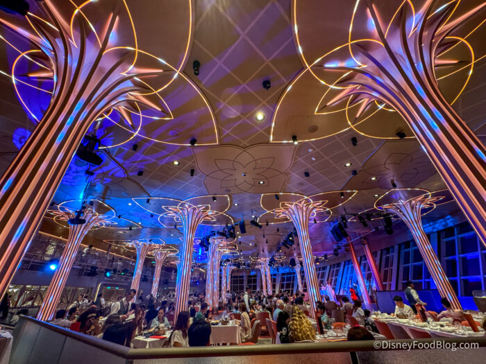 Its sister dining room is the Hollywood Spotlight Club, which is themed around the golden age of Hollywood. Mickey and his friends also perform musical acts here, too!