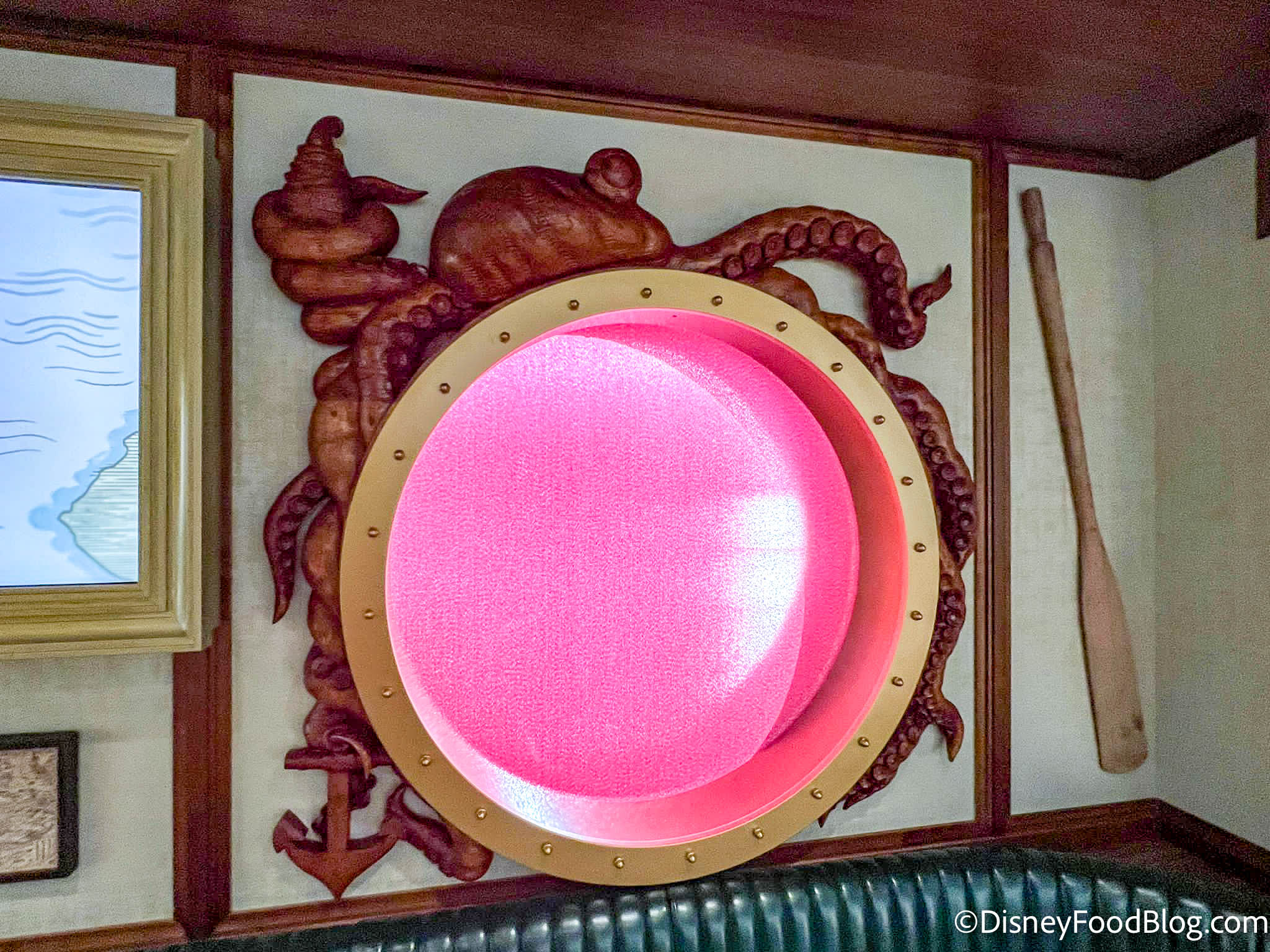 Captain Minnie is also featured on the bow of the Disney Wish! Disney explains that the scroll pattern (which has Hidden Mickeys and Plutos!) is reminiscent of the classic ocean liners of the 1930s, in keeping with the design of the other ships in the fleet.