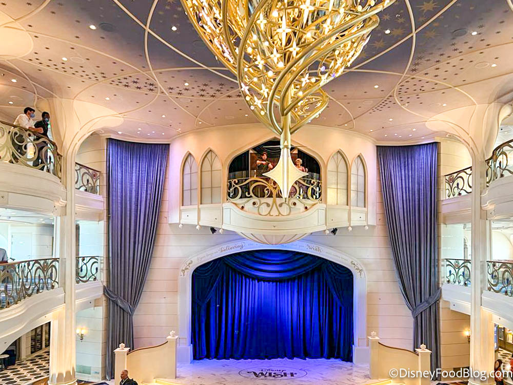 Disney says the Grand Hall is “inspired by the beauty of a fairytale castle” and makes a bold welcoming statement as guests step on board.