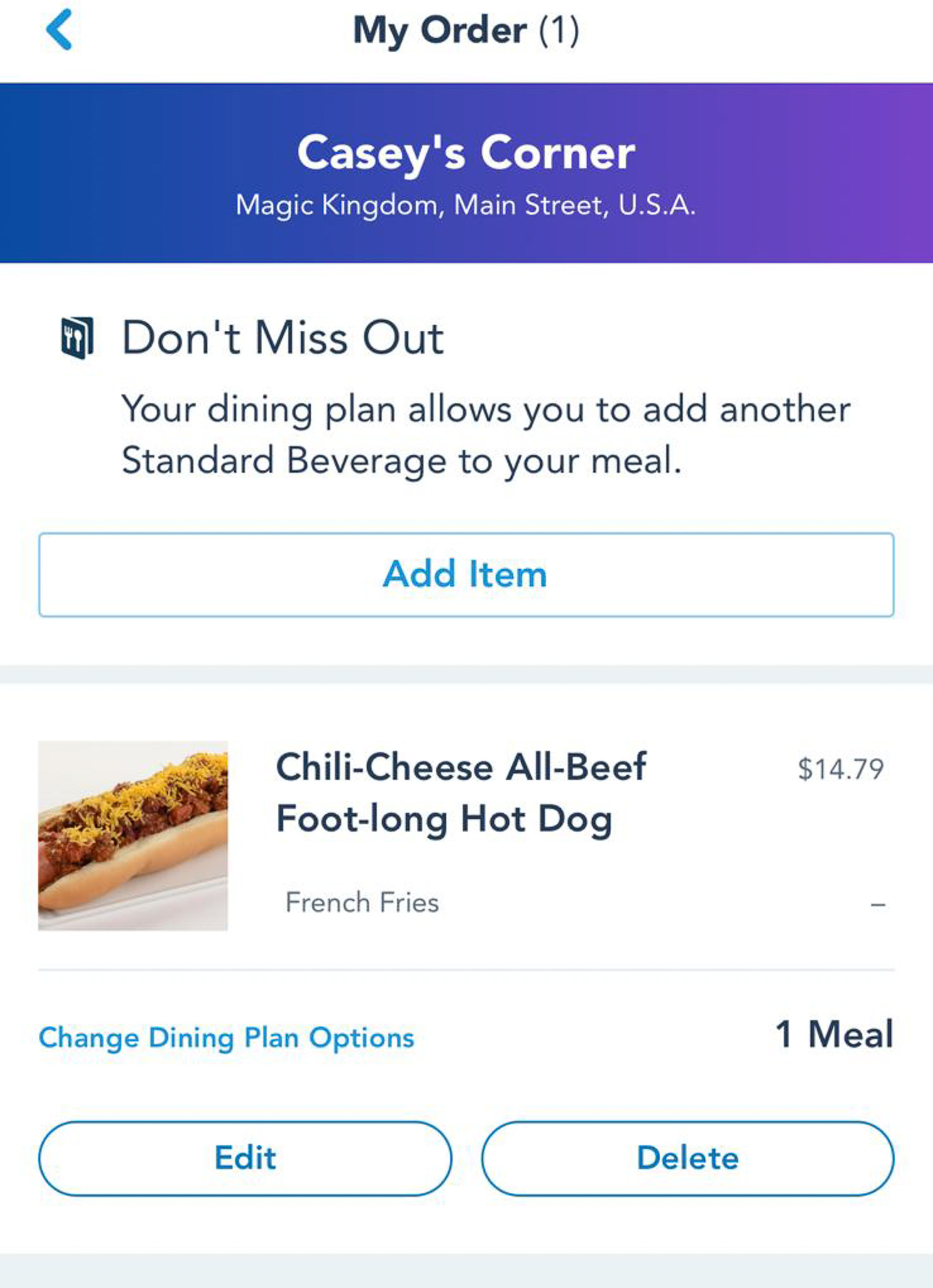 The app will also inform you if you’ve left something out that’s included in your Disney Dining Plan meal credits, ensuring that you’re receiving the full value of your credit.