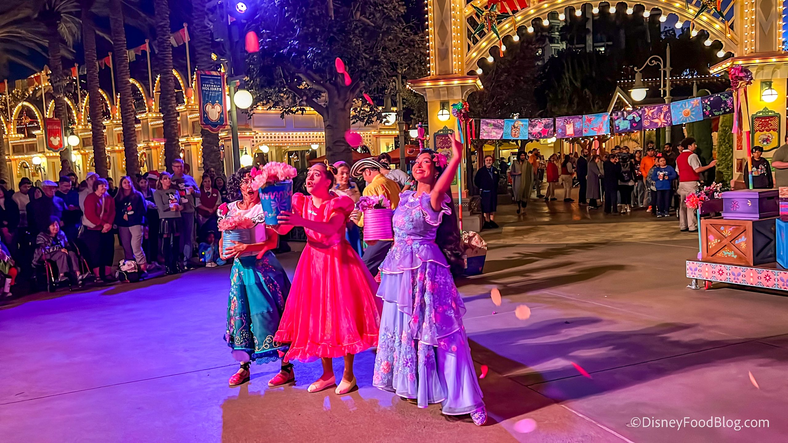 NEW in 2024 was an Encanto-themed show called “Mirabel’s Gifts of the Seasons,” presented Mondays through Fridays outside the entrance to Paradise Gardens Park, and it is back for 2025!