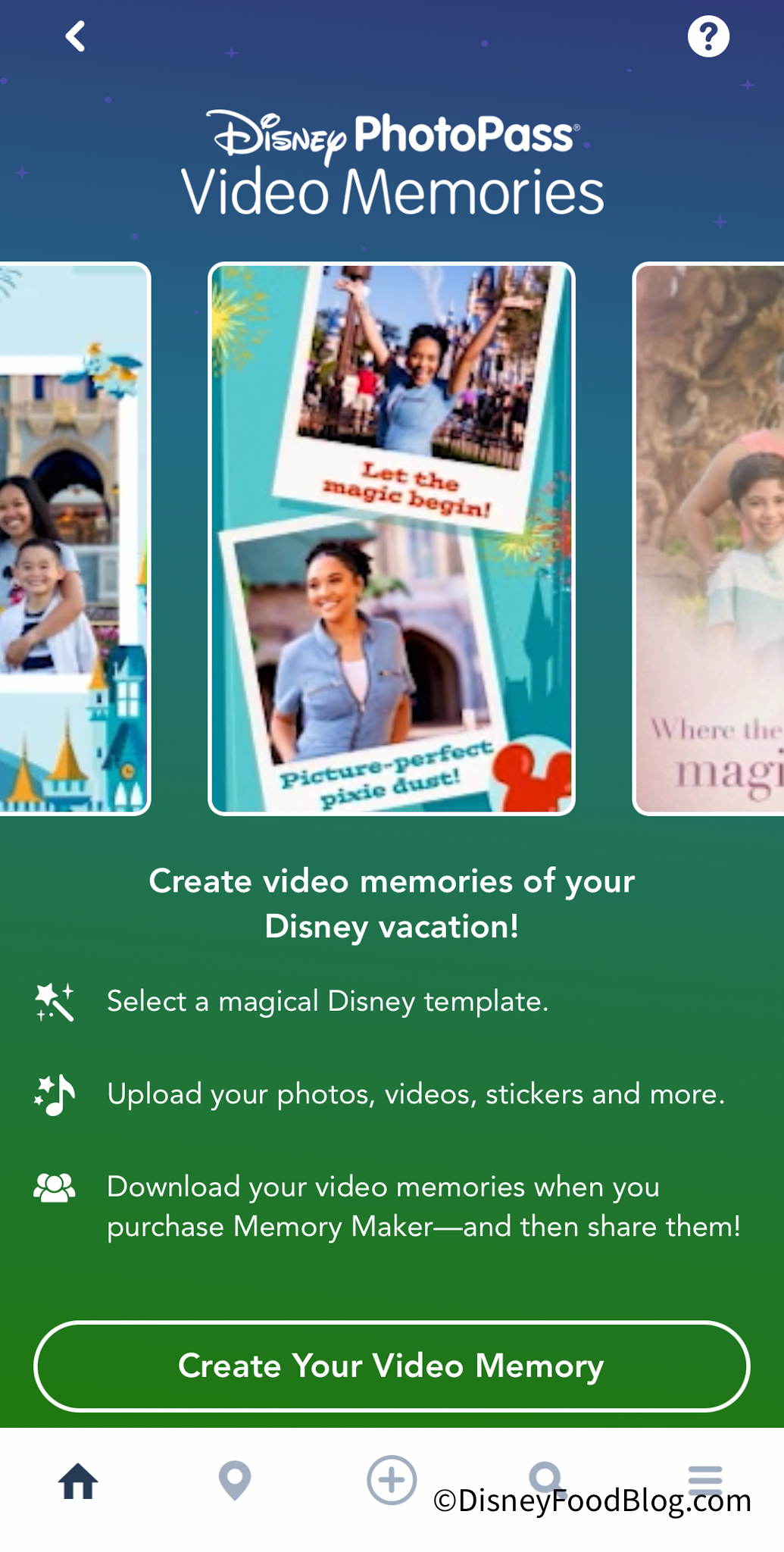 Guests can now create videos using PhotoPass photos and more to revisit their magical vacation at home with the Video Memories feature! In order to create yours, open the My Disney Experience app (to the home page) and scroll down until you see Video Memories.