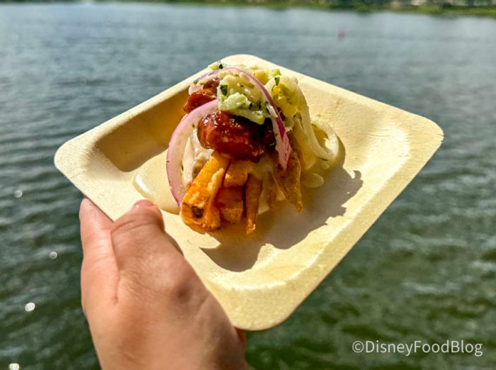 - St. Augustine Datil Pepper Frites: Crispy pork with Datil Pepper Sauce, Florida hearts of palm slaw, and beer cheese sauce made with Sunshine Stroll Orange Pilsner