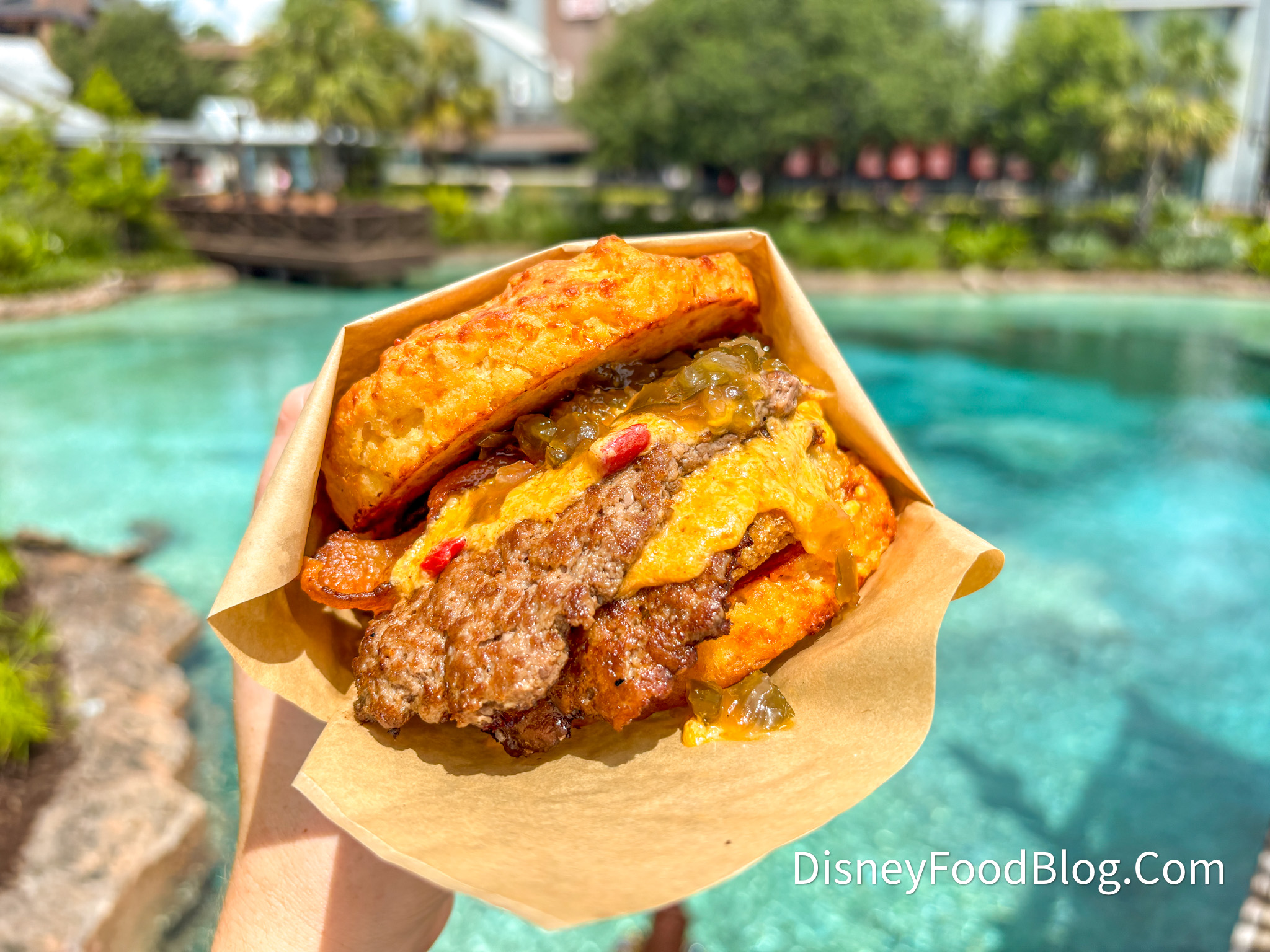 - The Glowing Oak Burger: Two-pressed signature blend beef patties, pimento cheese, fried green tomato, bacon, and jalapeño jam on a cheddar-chive biscuit (New)
