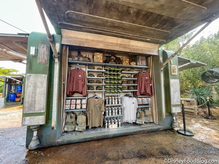Merchandise within the land of Star Wars: Galaxy’s Edge is unique in that it is “in-world.” You won’t find merchandise branded with the land’s name inside Galaxy’s Edge for a more immersive experience.