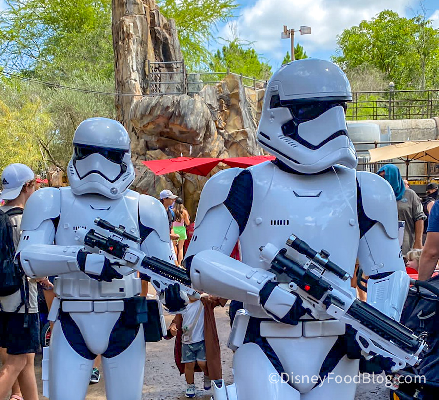 Essentially, you will very likely see several characters and perhaps even interact with them in the land; however, they do not have a designated greeting location*, nor do they often stand still for individual photo opportunities. In other words, Galaxy’s Edge does not typically offer “Character Meet-and-Greets” in the traditional sense.