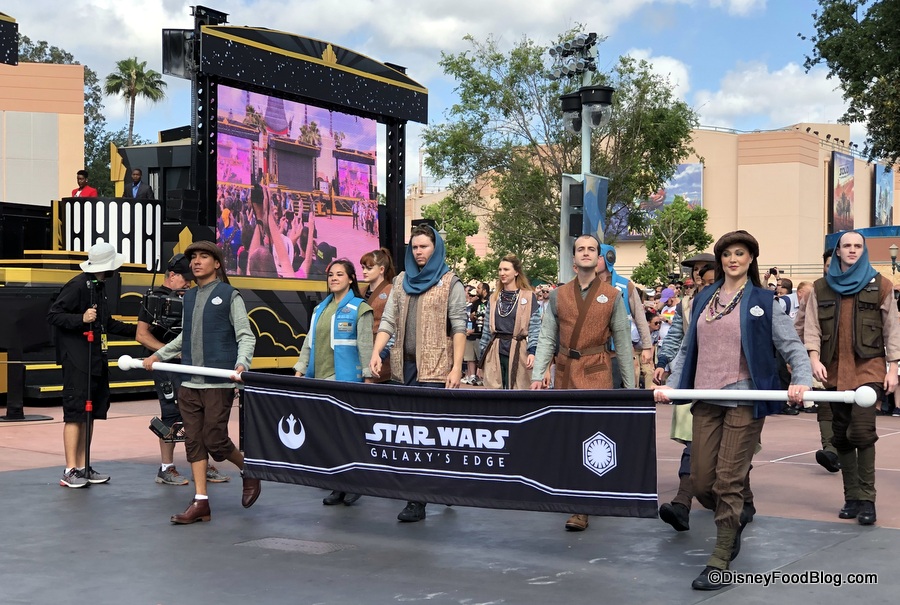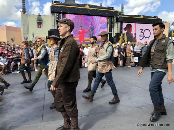We’re at Disney’s Hollywood Studios for the park’s 30th anniversary! As part of the celebration this morning, the park had an energetic cavalcade of characters and cast members in dress from around the park. And that means we got a FIRST LOOK at Star Wars: Galaxy’s Edge costumes up close!