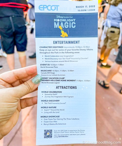 Moonlight Magic is an exclusive event for Disney Vacation Club Members that includes a night of after-hours access at a select park. During the night, members can enjoy shorter wait times for attractions, character meet and greets, entertainment, and complimentary special treats. These events are no-charge events for Disney Vacation Club members, and each member can register for one event date during each event season.