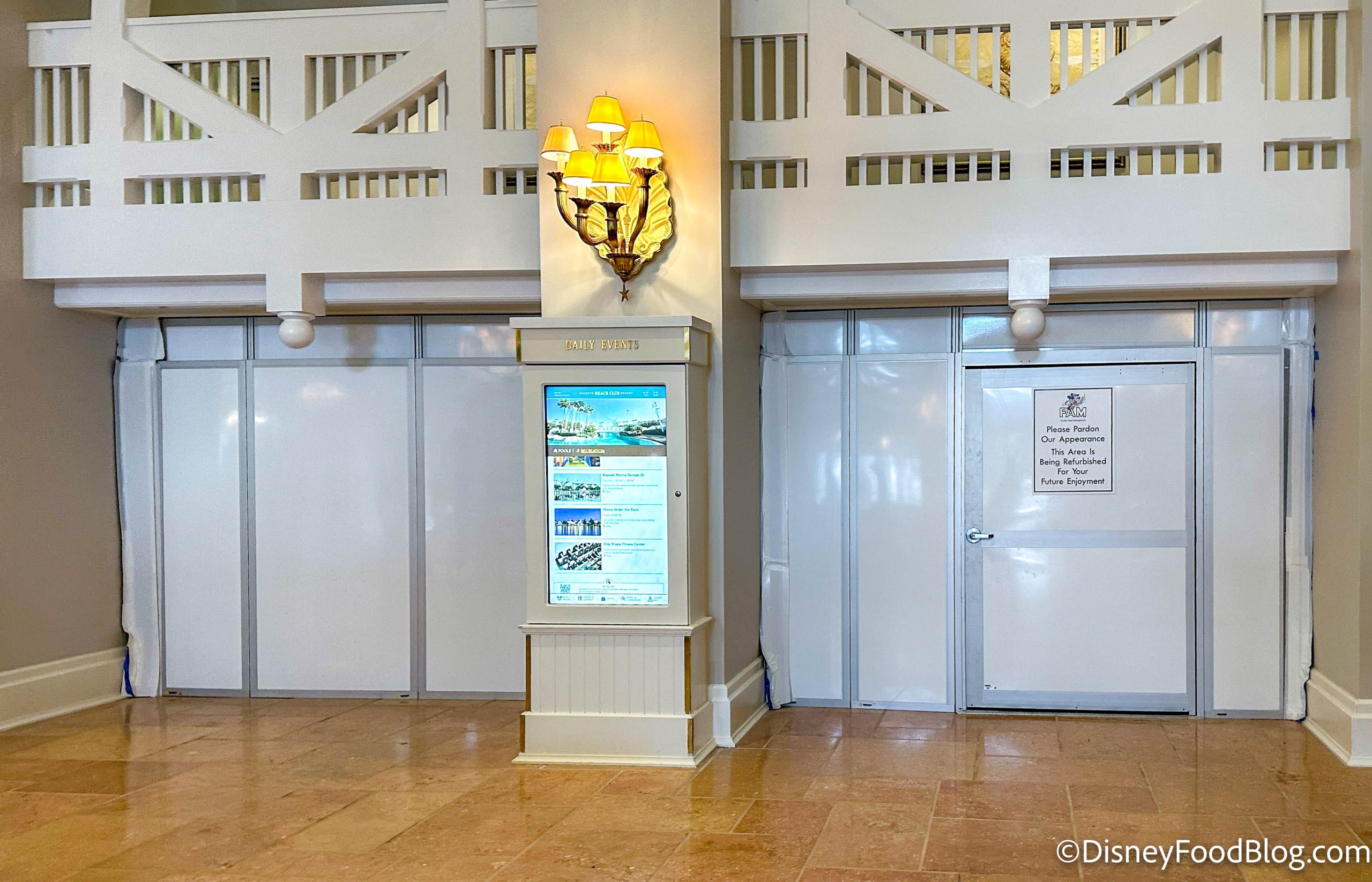 Lobby construction is still going strong, and unfortunately, that means there’s still a large area being blocked off as crews work to complete the refurbishments.