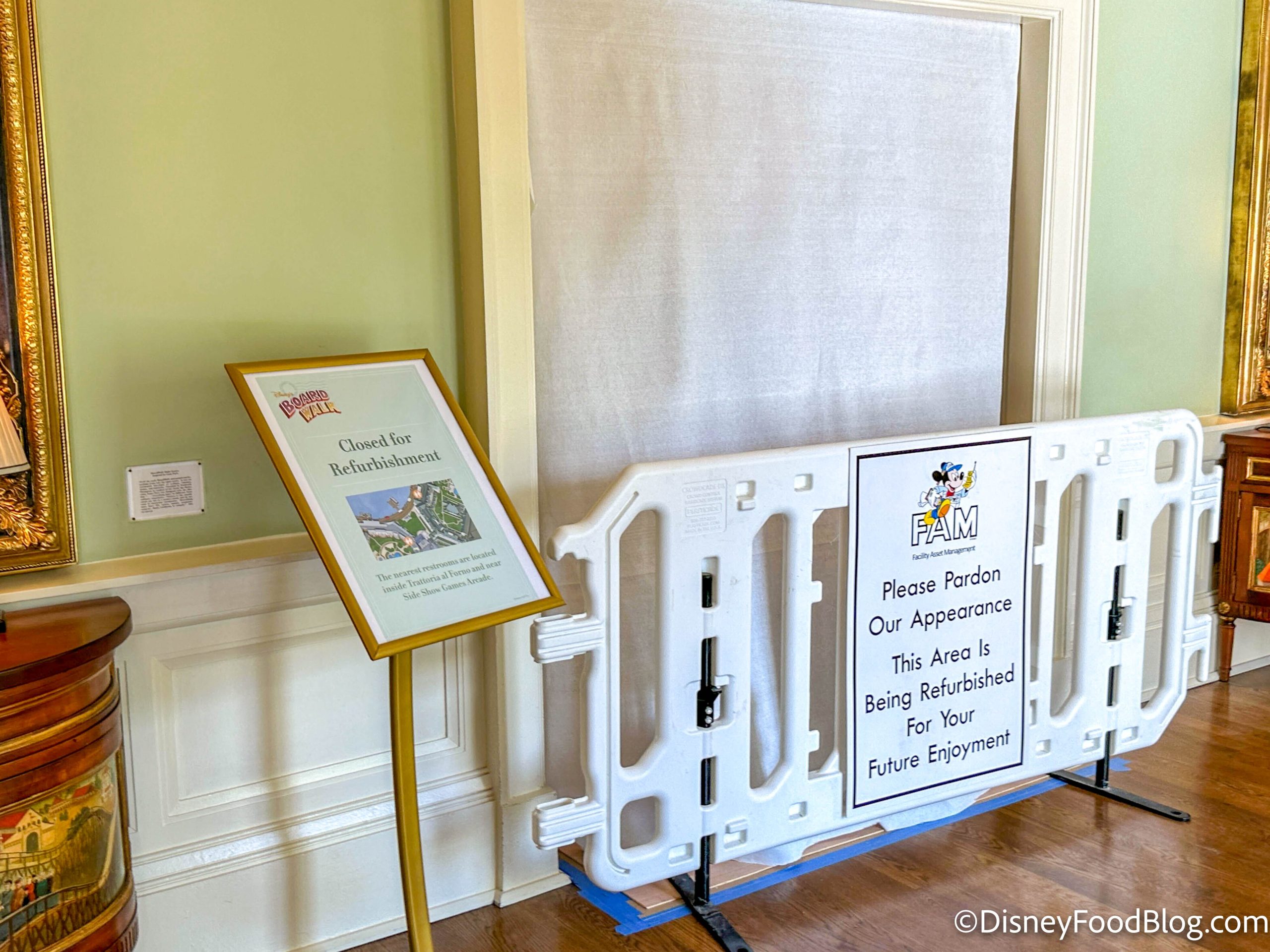 Within the lobby of Disney’s BoardWalk Inn, the bathrooms were closed…again!