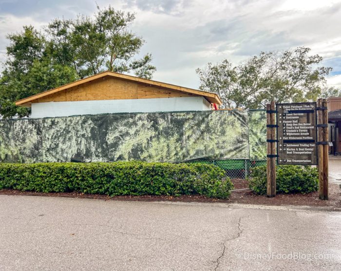 But, there’s still camouflaged fencing over near the ticket windows for Pioneer Hall. We spoke with a Cast Member who shared there’s a new office back there for chefs and team leaders.