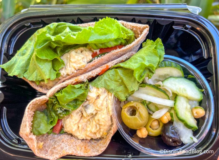 The Chickpea Salad Sandwich, which used to come on sliced bread, is now in a pita wrap.
