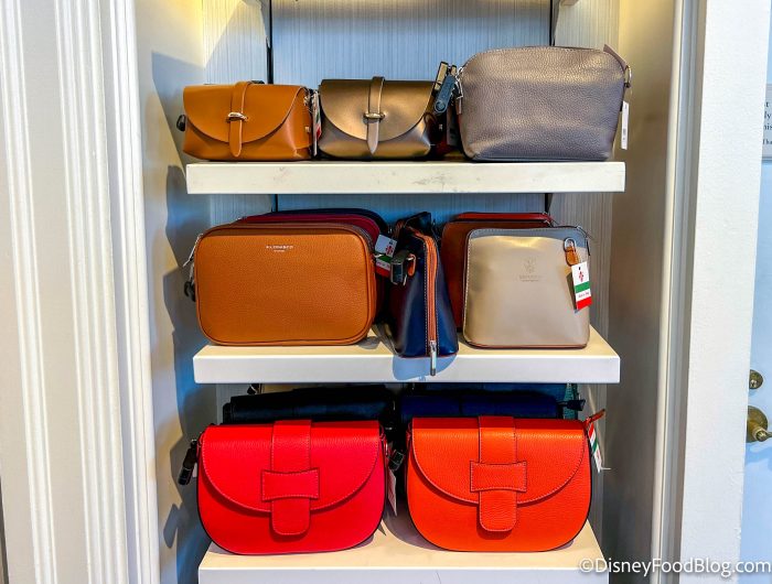 - The Italian leather handbags sold in the Italy Pavilion in EPCOT are now being sold here. They are priced between $59.99 and $150.