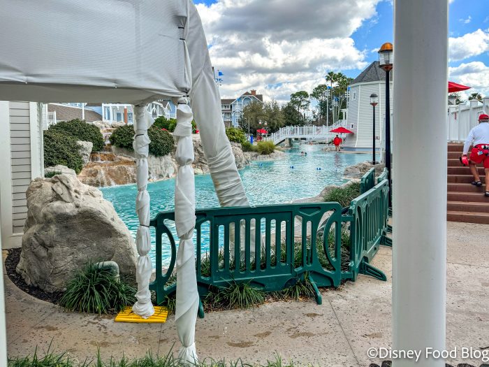 There is some scaffolding set up at Stormalong Bay, the pool area at this hotel.