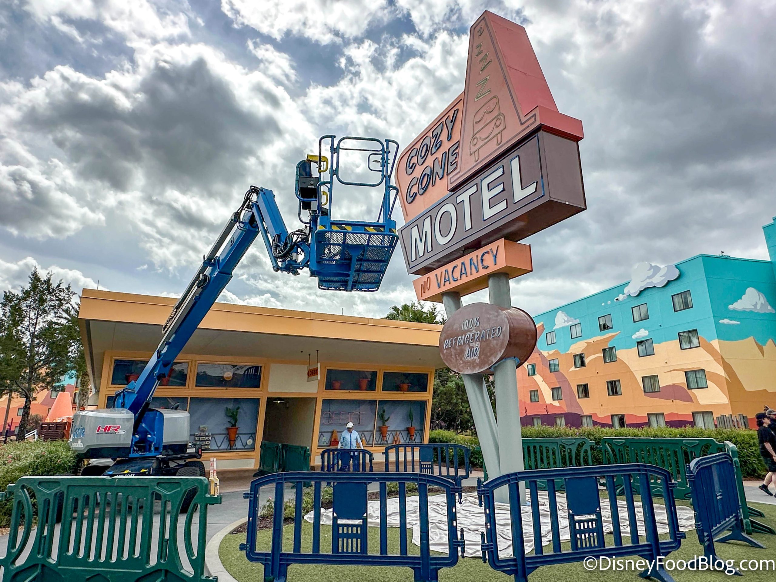 - In the Cars-themed section of the hotel, it appears there is some painting going on at the Cozy Cone Motel swimming pool.