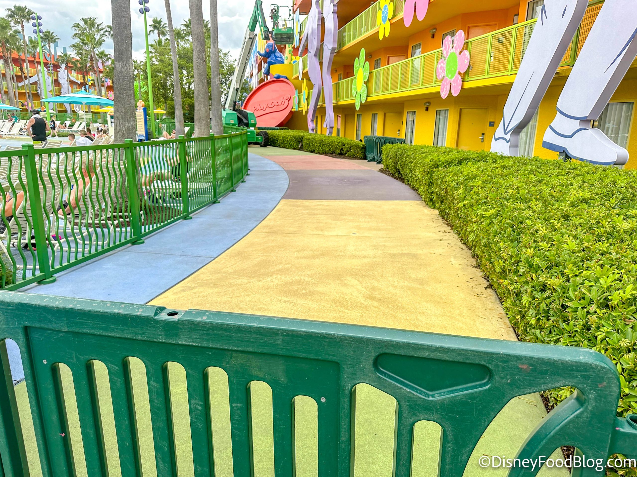 - At the Hippy Dippy Pool, some of the sections of the multicolored sidewalk were blocked off during our visit.