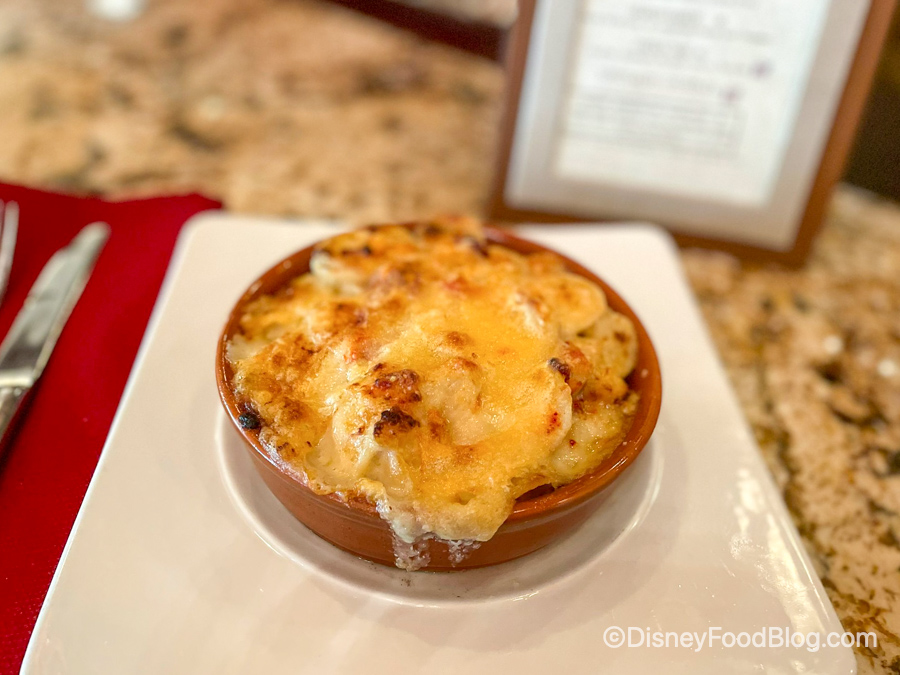 In several lounges, the connected restaurant’s full menu is often available (like at the Tune-In Lounge connected to 50’s Prime Time Cafe, or the lounge at the California Grill). But at Nomad Lounge, our kind server directed us to the Lobster Mac and Cheese that is served at the connected Tiffins!